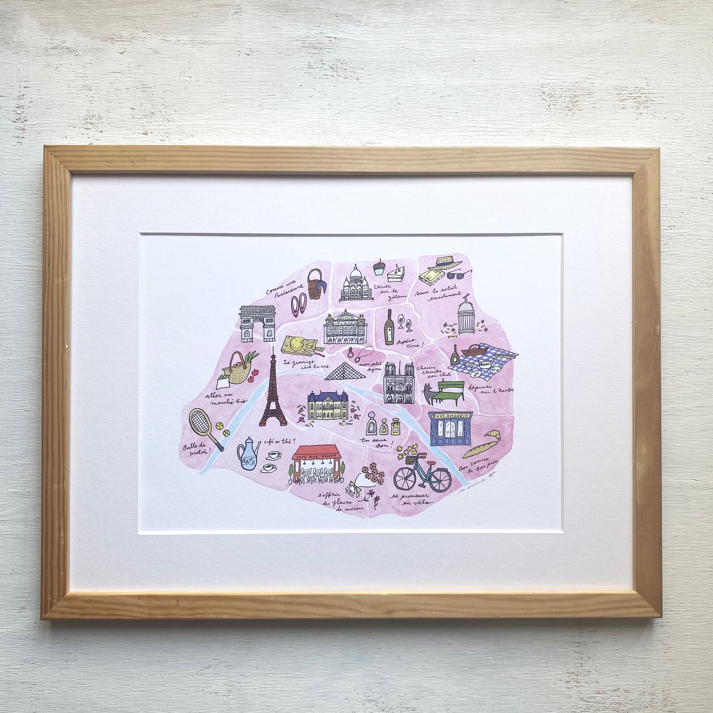 パリをテーマに、建物やパリの街からインスピレーションを受けたアイコンを散りばめた描き下ろしエディションアートプリント。